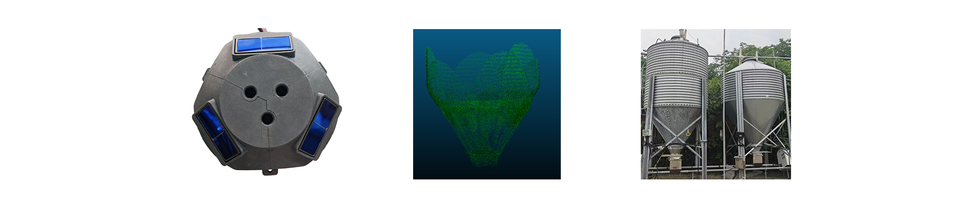 激光雷达通过发射激光束获取料仓内物料表面的三维点云数据,实现厘米级精度的体积计算,避免人工攀爬测量的安全风险,尤其适用于有毒、高温或高空环境。传统人工巡检需每日攀爬4~5次,激光雷达实现远程实时监控,降低90%人力成本。通过数据驱动农业供应链优化(如饲料精准调配、粮食减损),经济效益可放大至技术投入的50倍。